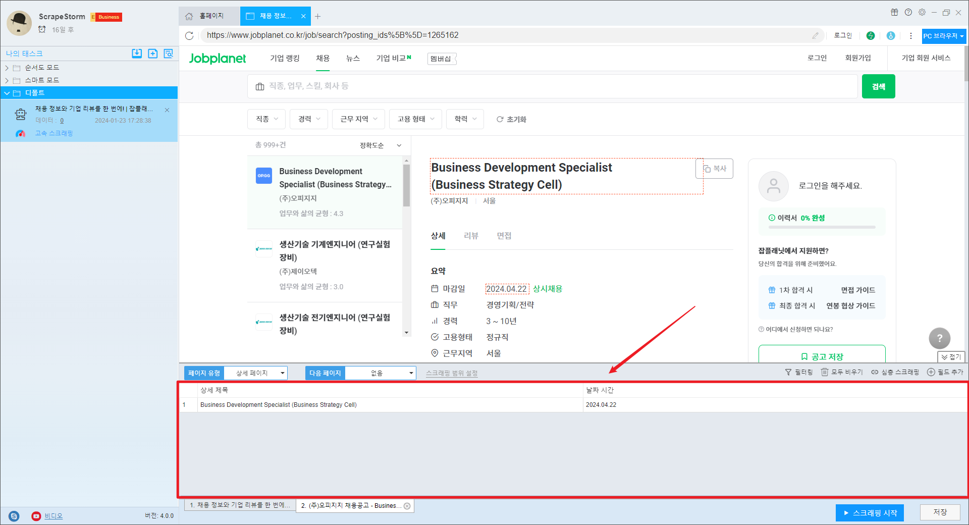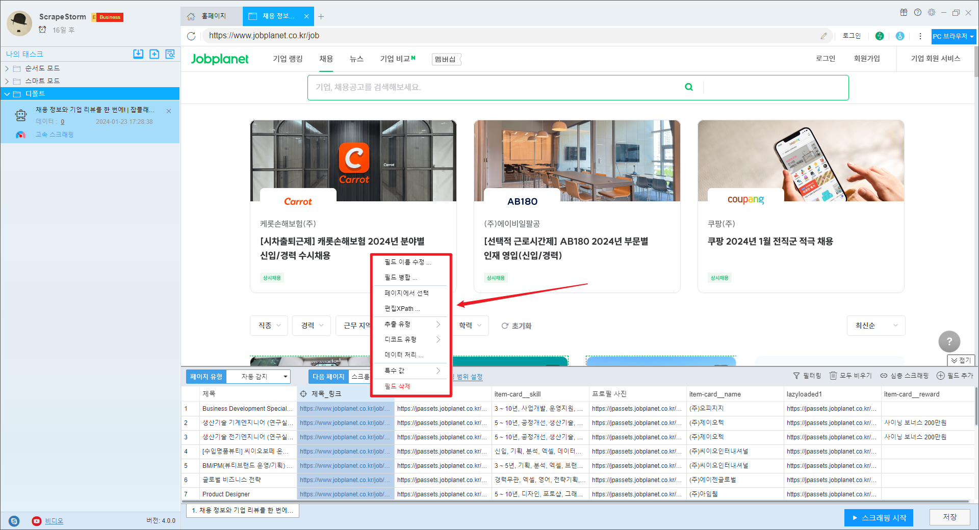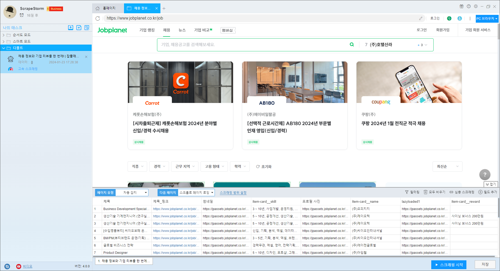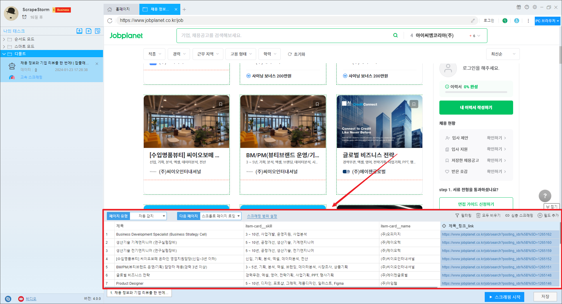 ScrapeStorm 가이드: Jobplanet의 최신 채용 공고를 무료로 스크랩하는 방법