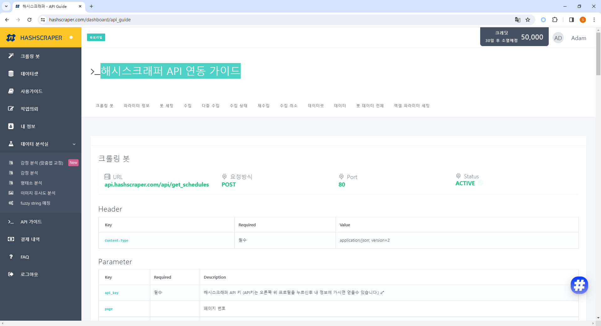 HashScraper의 API도 강력한 기능과 유연성을 제공하지만, 사용 및 통합의 장벽이 상대적으로 높아, 강력한 기술 배경을 필요로 합니다.