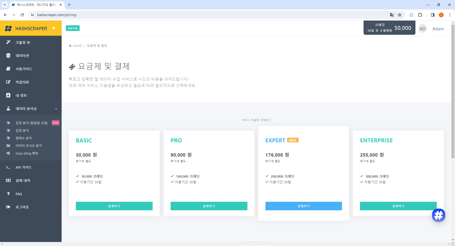 HashScraper는 무료 버전을 제공하지 않으며, 수집 템플릿을 사용하기 위해 일정한 비용을 지불해야 합니다. 이는 사용자의 초기 투자와 지속적인 비용을 증가시킬 수 있으며, 특히 기본 데이터 크롤링 작업만 필요한 사용자에게는 더욱 그렇습니다.